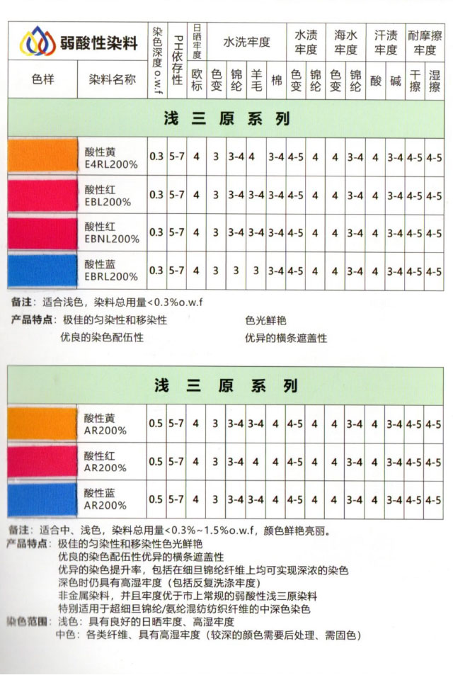 高牢度分散染料作為合成纖維染色的核心材料,以分子結構小、不含水溶性基團為特征,需借助分散劑實現均勻染色。其技術特性聚焦于色牢度提升,涵蓋耐洗、耐光、耐摩擦、耐升華等多維度性能,采用五級制評級體系(耐光牢度為八級),級數越高代表性能越優。例如,蒽醌結構染料因分子穩定性高,耐曬、耐熱性能顯著;偶氮…